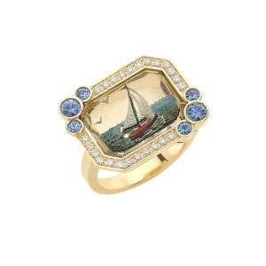 Blue Nini Sailing Vintage Essex Enamel Ring with Diamond and Sapphire