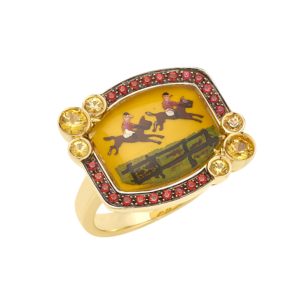 Glory Days Horse Race Ring with Orange & Yellow Sapphires Enamel Vintage Essex Crysstal Ring