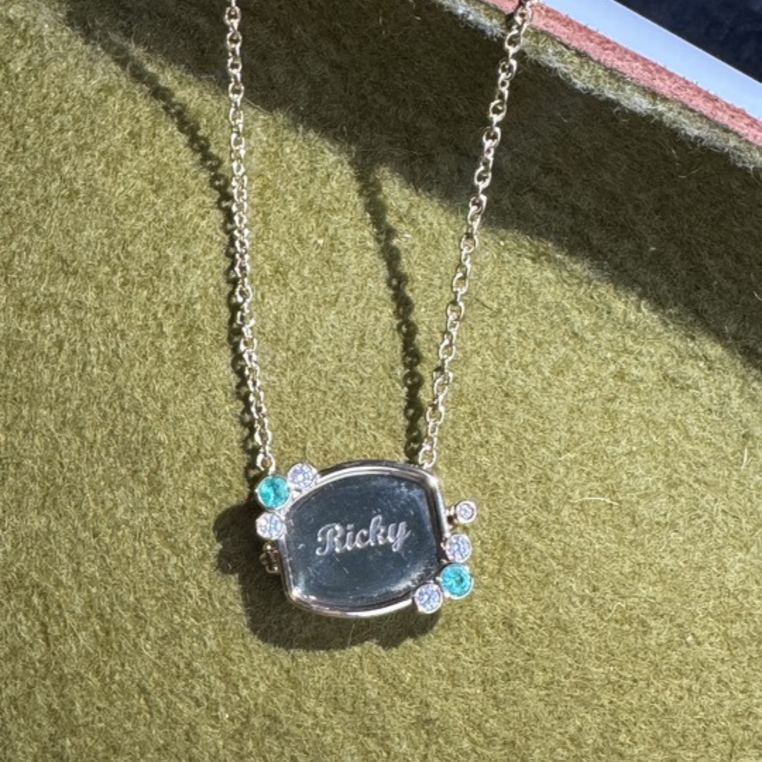 Because Francesca offers this unique service, we had to create a necklace for Moria and her famous dog, Ricky. See below to see how her necklace turned out!