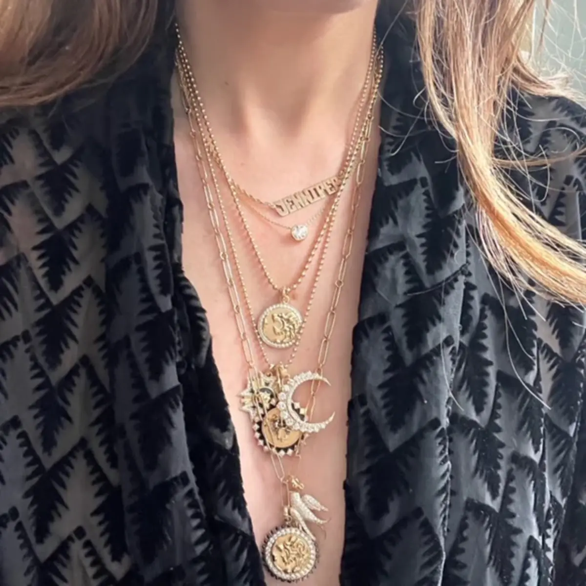 Add celestial elegance to your jewelry collection with the 14K Yellow Gold and Diamond Crescent Moon Estelle Charm by M. Flynn. Crafted in rich 14K yellow gold, this delicate charm features a shimmering crescent moon adorned with sparkling white diamonds. Perfect for layering on a chain or adding to a charm necklace, the Estelle Charm brings a touch of luxury and celestial magic to any look. A timeless gift or personal keepsake, this diamond moon charm is a stunning piece you’ll treasure forever.