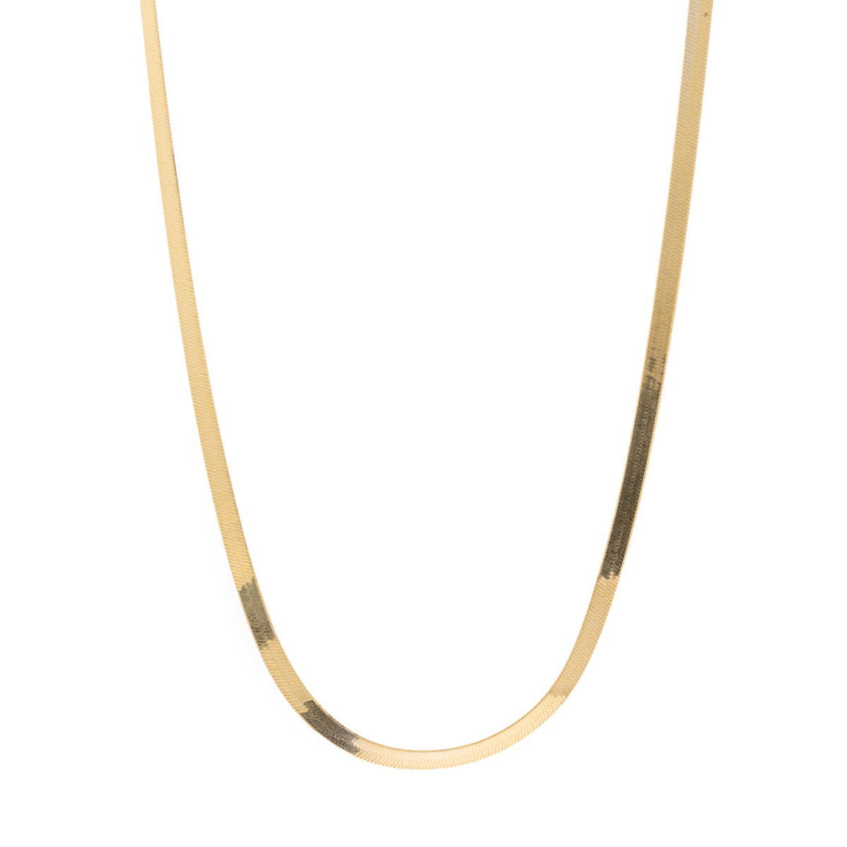 The smallest of our 14K yellow gold herringbone chain necklaces