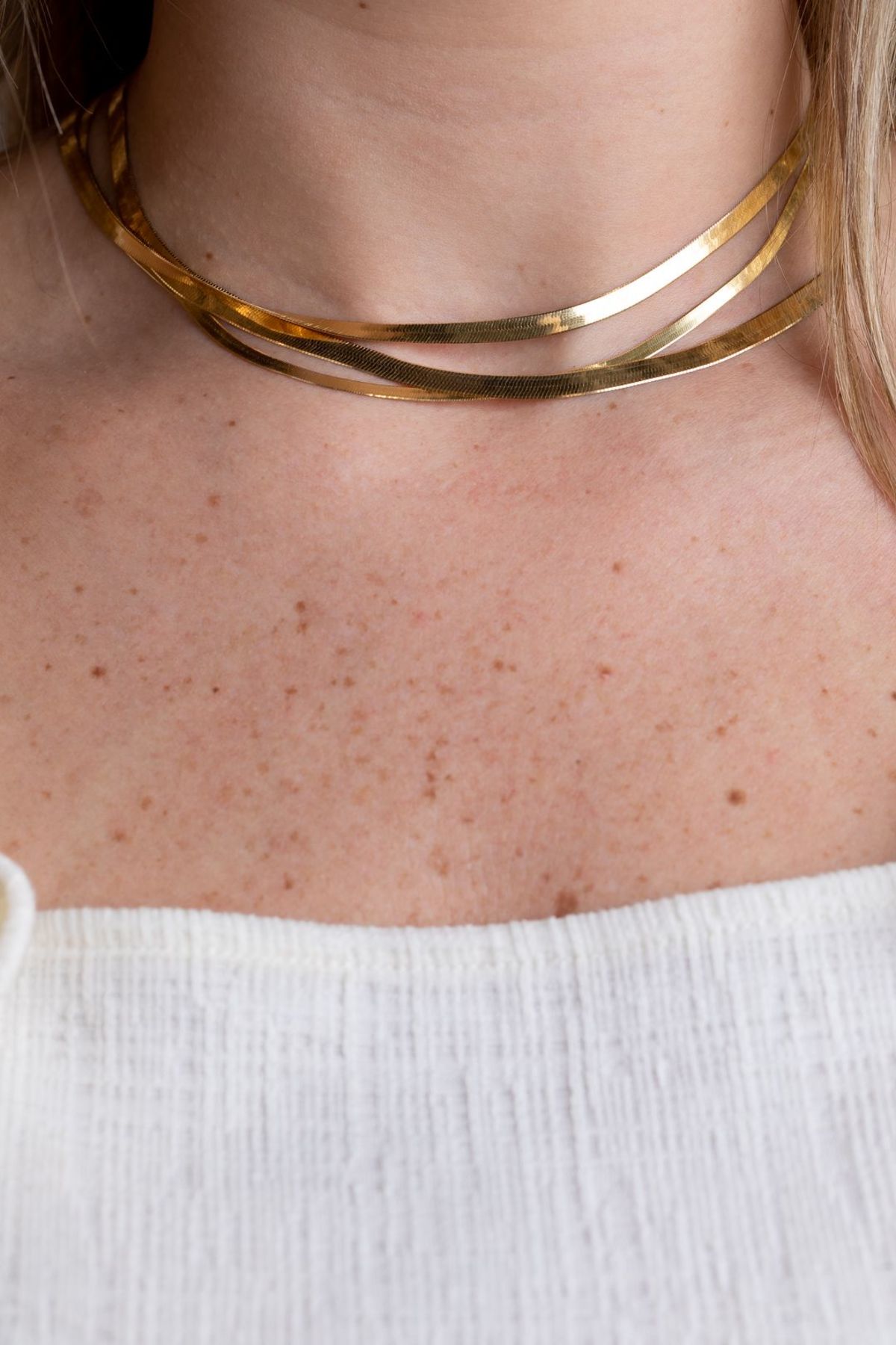 Our medium size herringbone chain necklace in 14k yellow gold