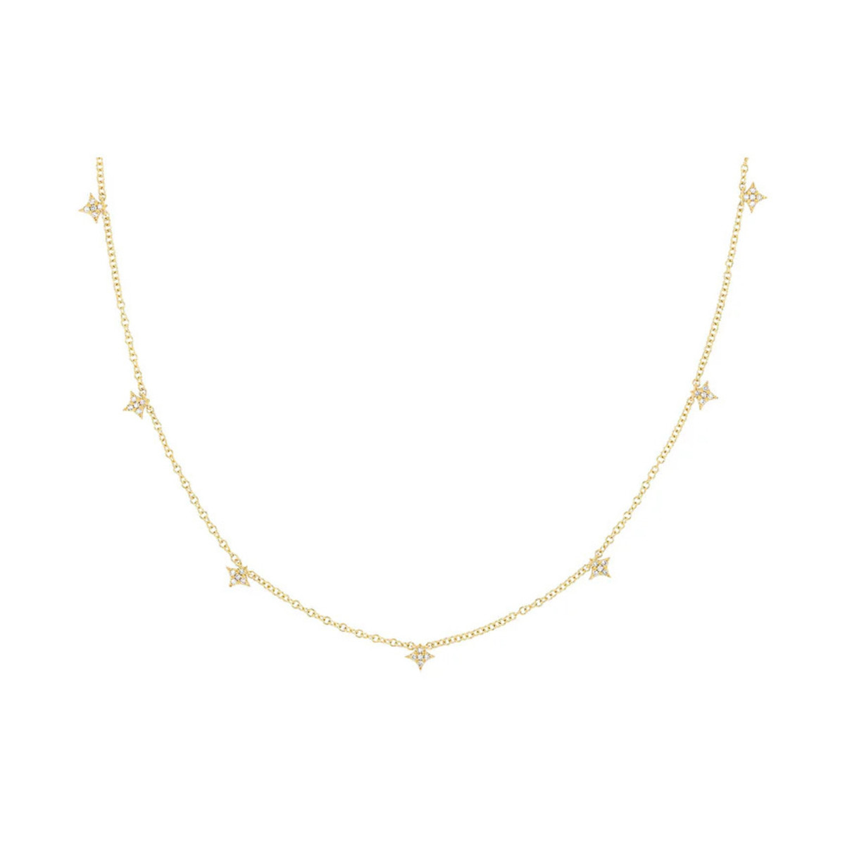 Seven diamond strings necklace in 14k yellow gold
