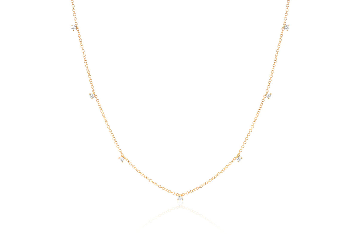 The 7 Prong Set Diamond Necklace in 14K Yellow Gold Gleams with Seven Small Diamonds Set Along a Delicate Cable Chain. Designed to Twinkle On Your Neck, This Dainty Necklace Looks Great Layered or Solo.