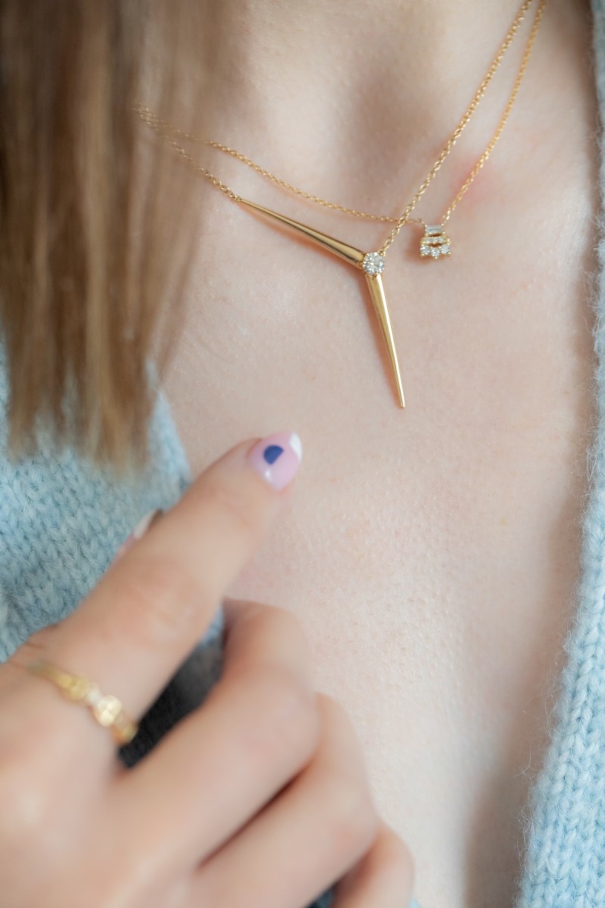The Aria Y Necklace by Melissa Kaye is a modern and sleek pendant. The single diamond adds the perfect amount of sparkle and makes this necklace eye-catching!