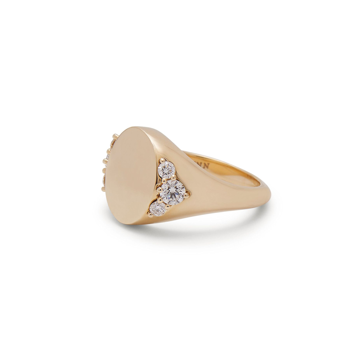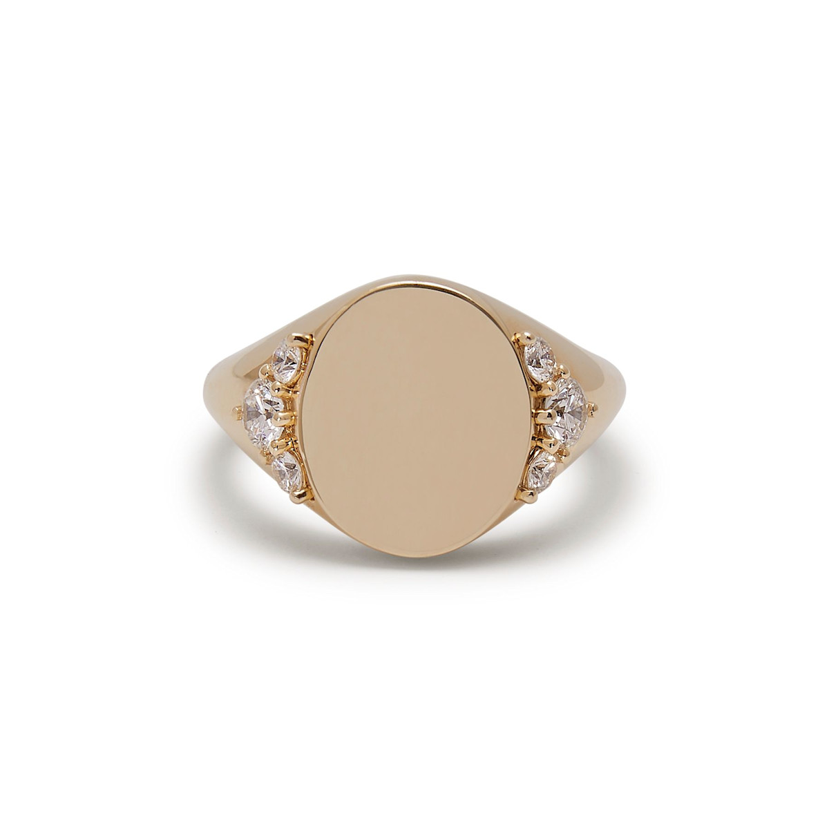 Elevate your everyday style with the timeless sophistication of the Ava Diamond Signet Ring. Crafted with precision, this classic signet design is adorned with shimmering diamonds, adding a touch of elegance to its bold silhouette. Perfectly balanced between modern and traditional aesthetics, this ring is a versatile accessory for any occasion. Whether worn as a statement piece or stacked with other favorites, the Ava Diamond Signet Ring is a refined choice that exudes confidence and charm.