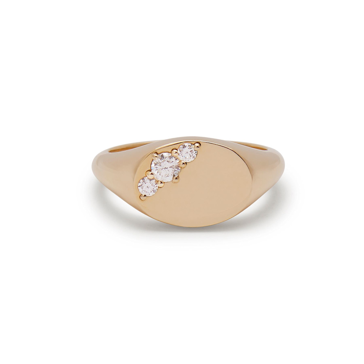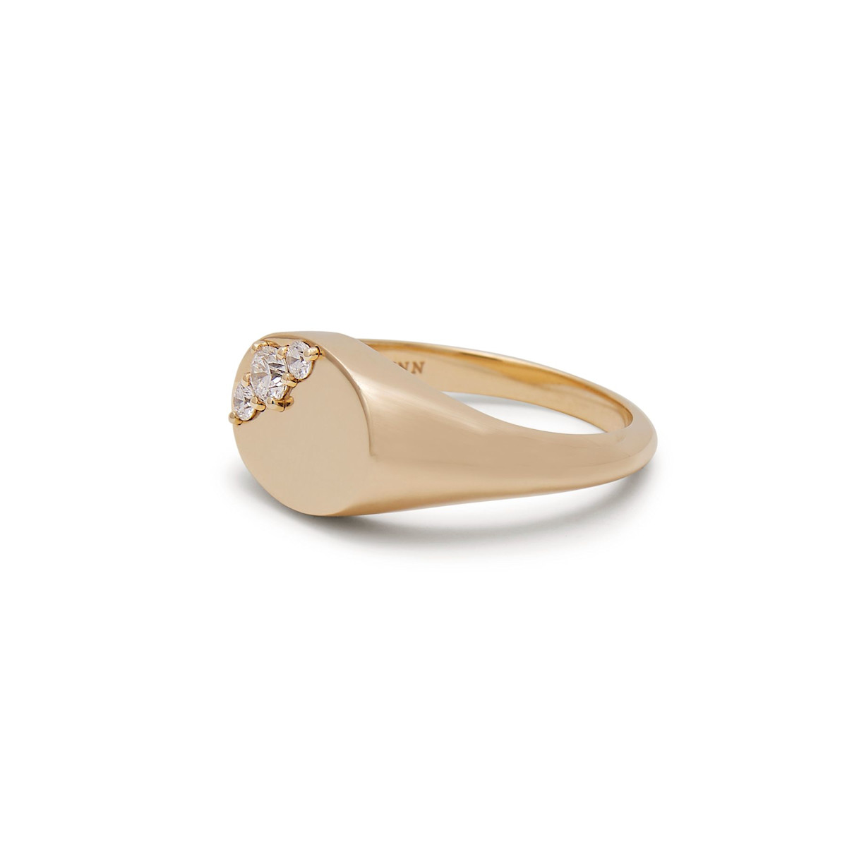 The Ava Partial Diamond Signet Ring brings a modern twist to a timeless classic. Crafted with precision, this sleek signet design features a partial pave of sparkling diamonds, adding a subtle yet captivating touch of brilliance. Its minimalist style and refined craftsmanship make it perfect for daily wear or as an elegant statement piece. Whether paired with other rings or worn solo, the Ava Partial Diamond Signet Ring exudes effortless sophistication.