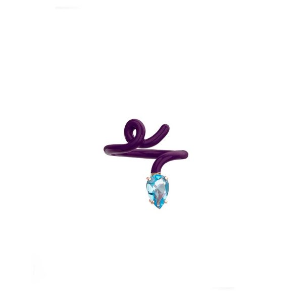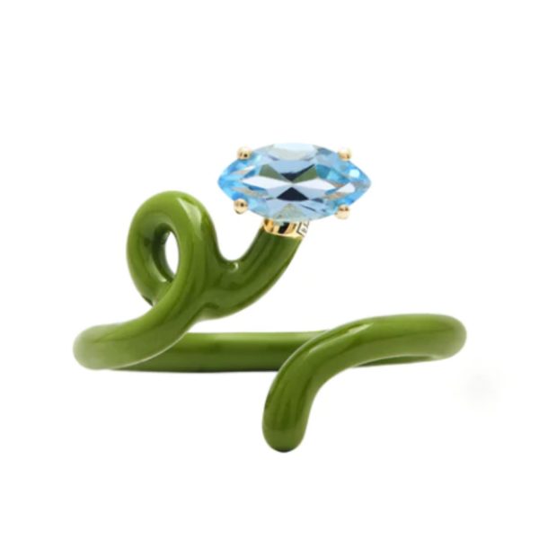 Baby Vine Tendril Ring with japanese orange enamel and marquis cut rock crystal