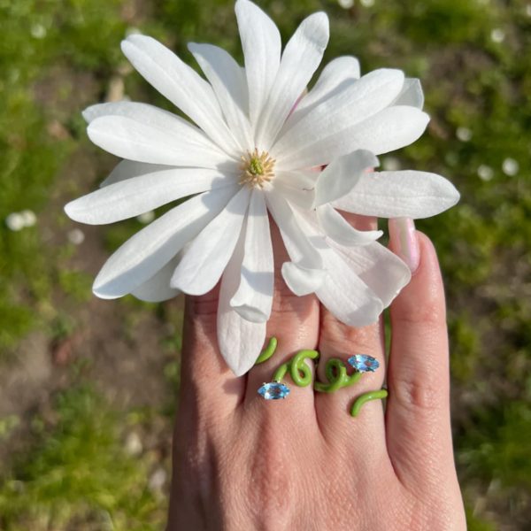Baby Vine Tendril Ring in Japanese Orange Enamel and Rock Crystal