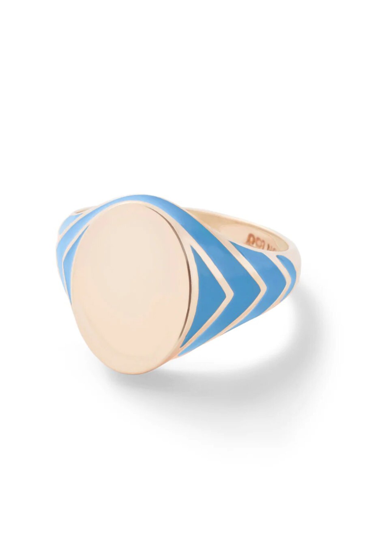 A fun take on the classic signet ring featuring blue enamel stripes in 14k yellow gold.