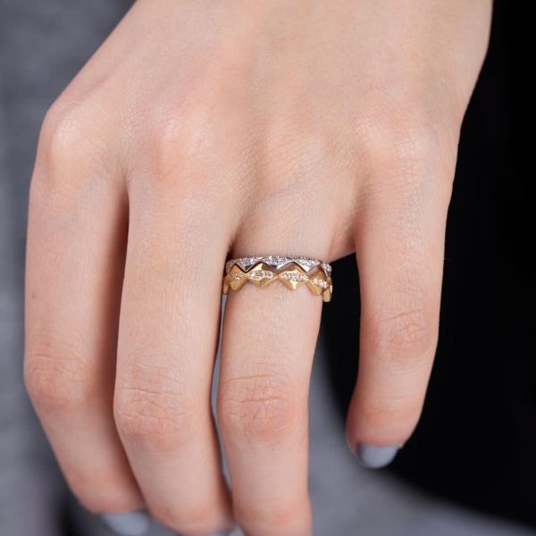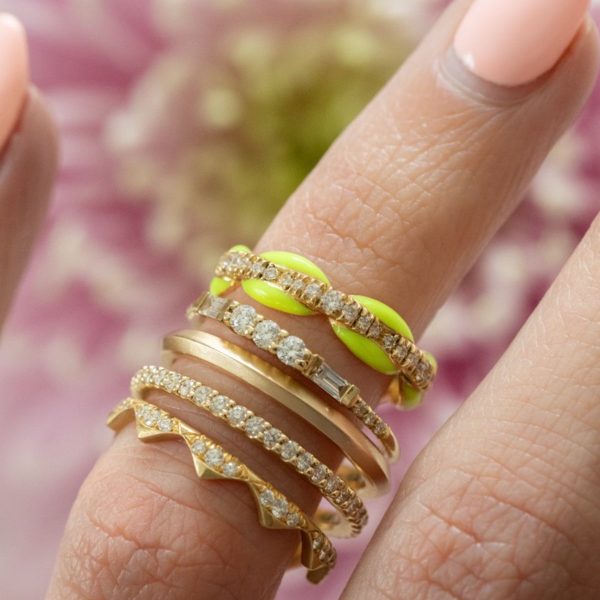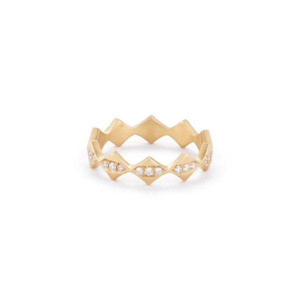 The Catherine 5 Stone Band Features a Curved Silhouette That Stacks Well Against The Center Stone Of An Engagement Ring. We Recommend This Band Paired With The Jade Trau Catherine Engagement Ring Setting.