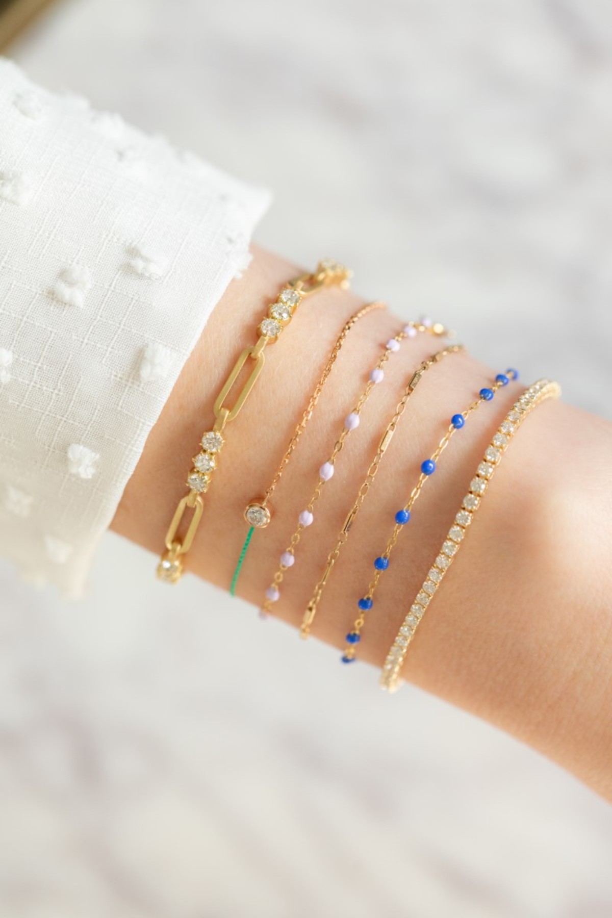 This simple classic gigi bracelet in turquoise is handmade in the south of France and has a length of 6.7 inches, adjustable to 6.4 inches. It’s an easy fit wherever you go, worn as a single strand or layered. The classic gigi collection is a celebration of life, color, and you.