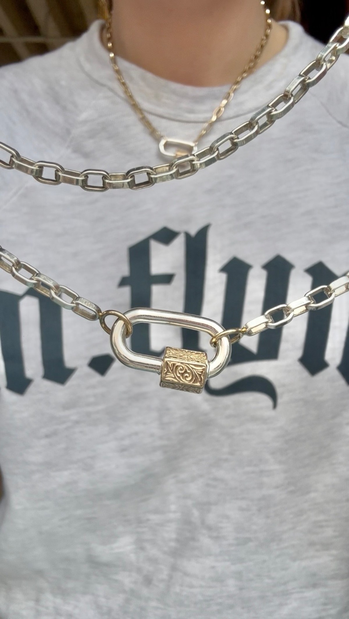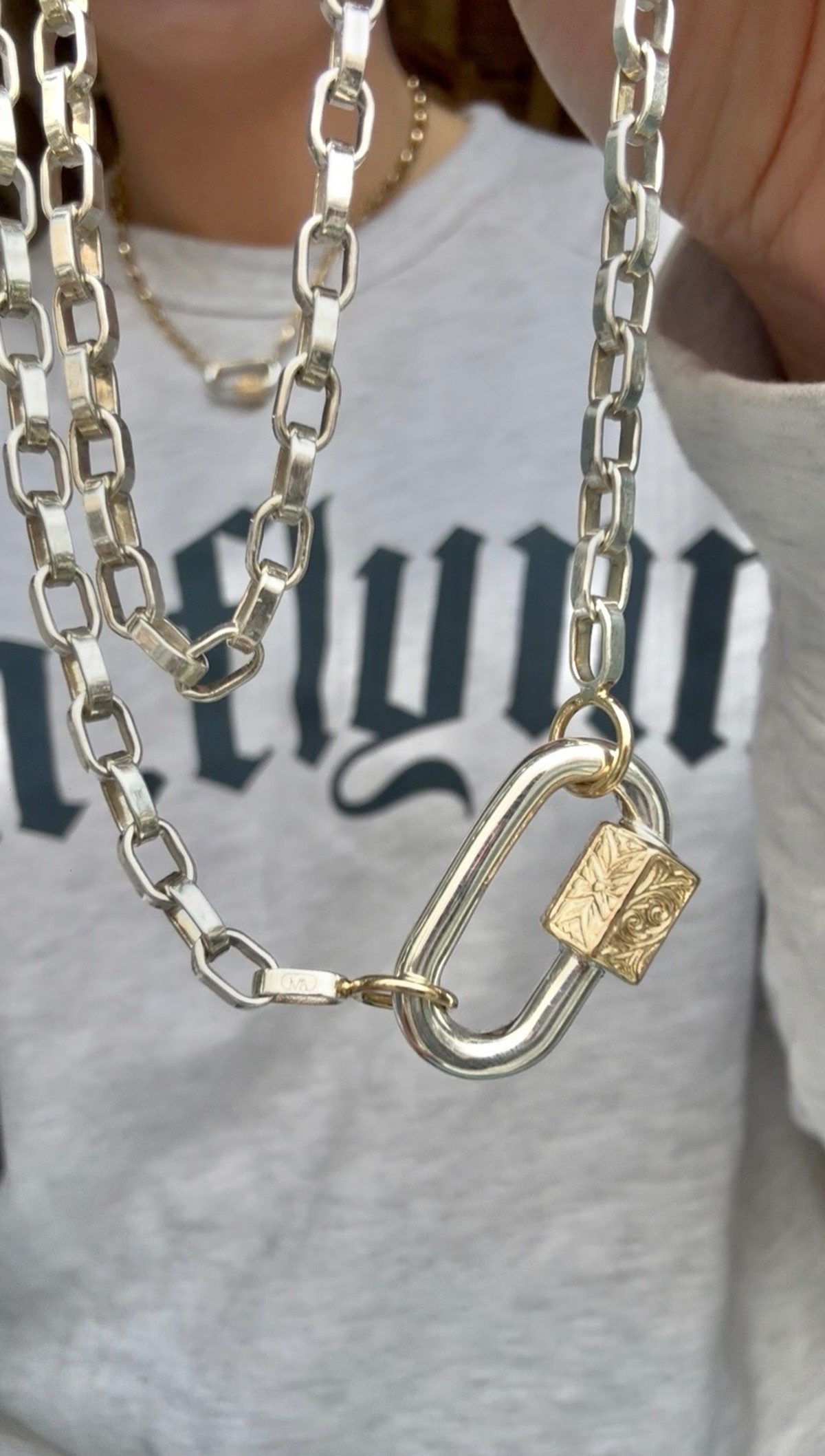 A bold twist on a Marla Aaron favorite. The Embossed Chubby Medium Lock features Marla’s signature mixed metal look with a fresh embossed texture that adds edge to any lock stack. Wear it with a chain or link it to your other locks—this one’s made to play.