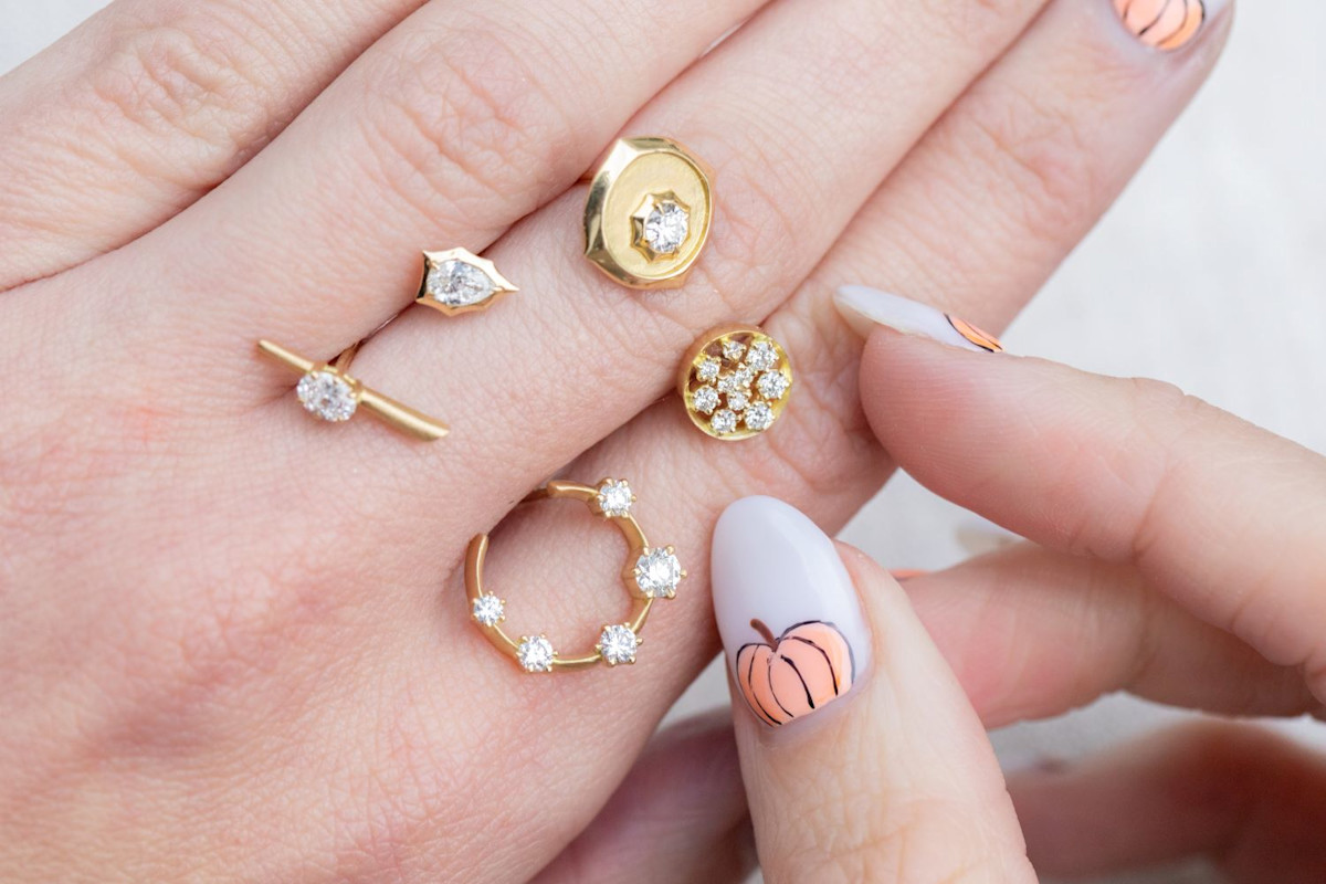 The Envoy Diamond Studs Feature Pear-Shaped Diamonds In Jade Trau’s Signature Alchemy Setting For an Elevated and Unique Take On a Classic Diamond Stud.