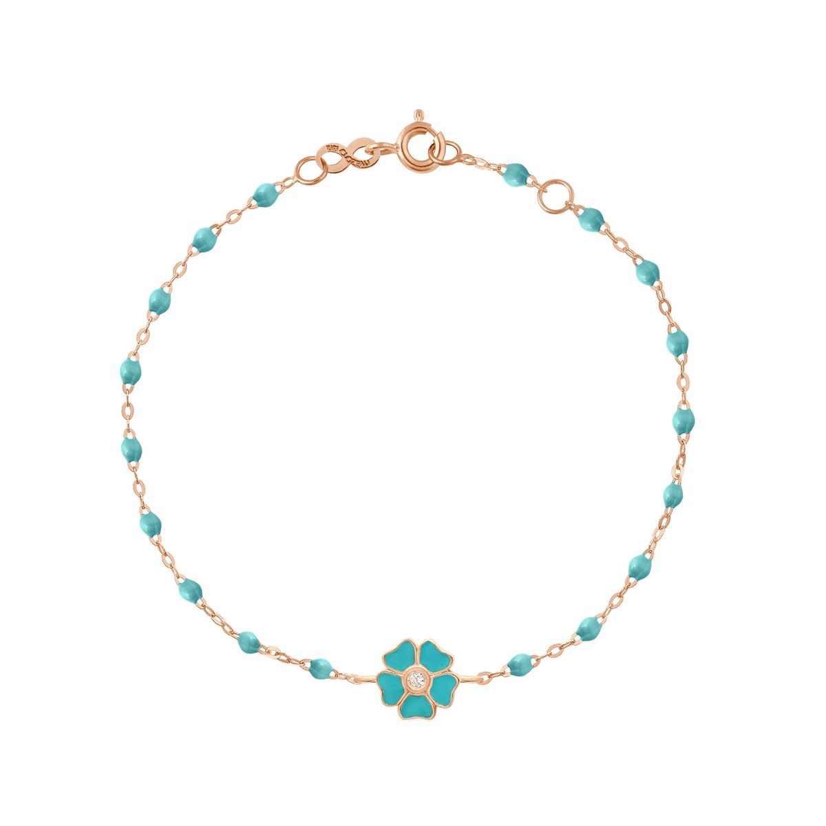 The Classic Gigi Flower Bracelet by Gigi Clozeau Features Turquoise Resin Pearls and a subtle diamond in the center of the flower.