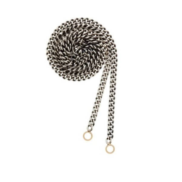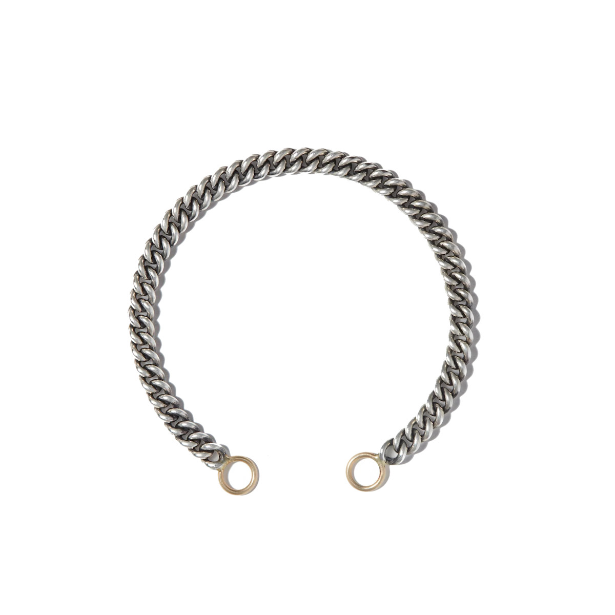 The Heavy Curb Chain Bracelet In Sterling Silver with 14K Yellow Gold Loops