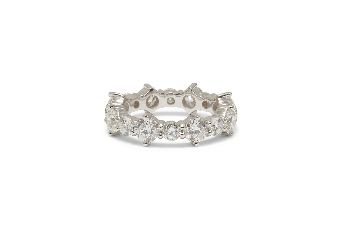 An Eternity Band With a Twist… The Large Ava Eternity Band Combines Alternating Sized Stones For Extra Sparkle. This Ring Is Substantial Enough To Wear Alone As An Everyday Statement Ring, or Can Be Added To a Wedding Stack.