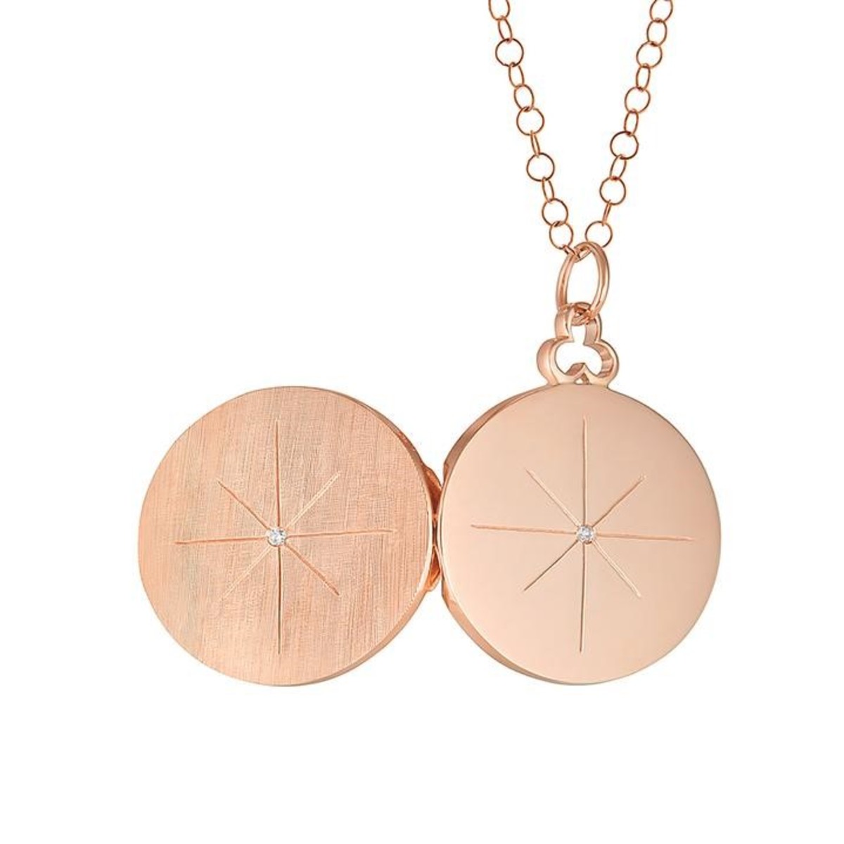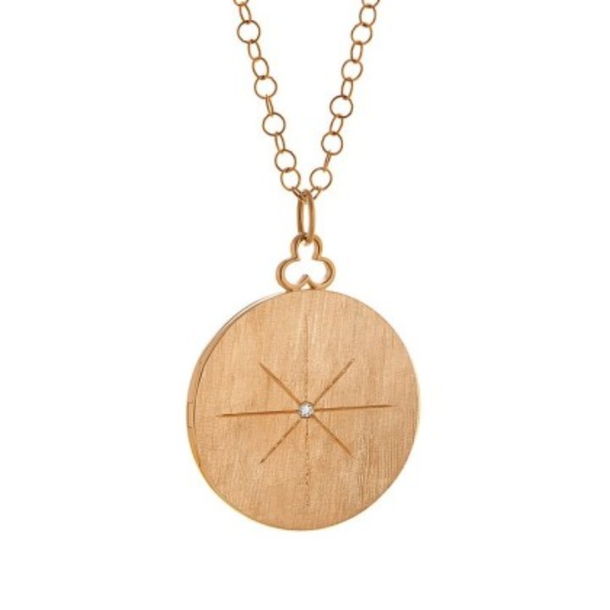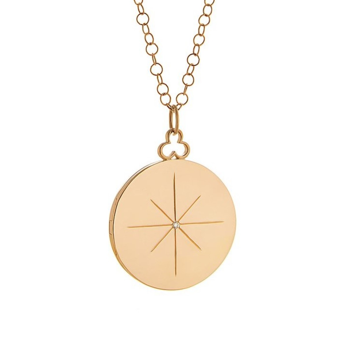This 18k yellow gold locket features a radiant star motif, accented with diamonds.