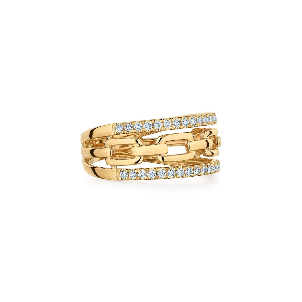 A bold take on timeless elegance, the Madison Avenue Link Ring features interlocking links crafted in rich 18K yellow gold, accented with a row of sparkling diamonds for a modern yet classic finish. Designed to stand out whether worn solo or stacked, this ring brings sophisticated edge to any jewelry collection. Perfectly balanced between statement and staple, it reflects the confident style of Madison Avenue with