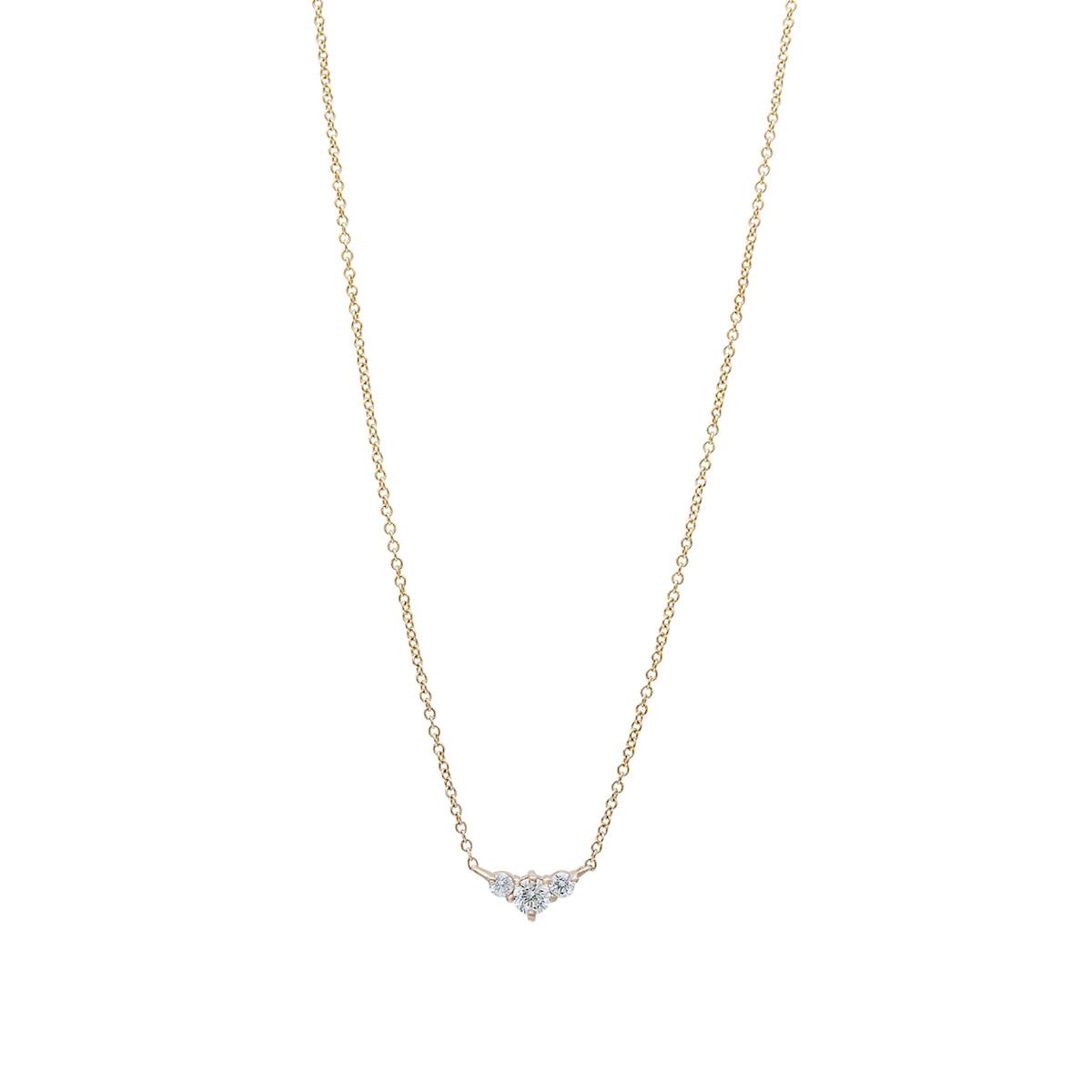 The Mini Ava Pendant, designed to sparkle alone, or to layer with the jewelry you love, features 3 diamonds in our signature Ava design with a round brilliant center stone, accented by two smaller stones, for ample bling.