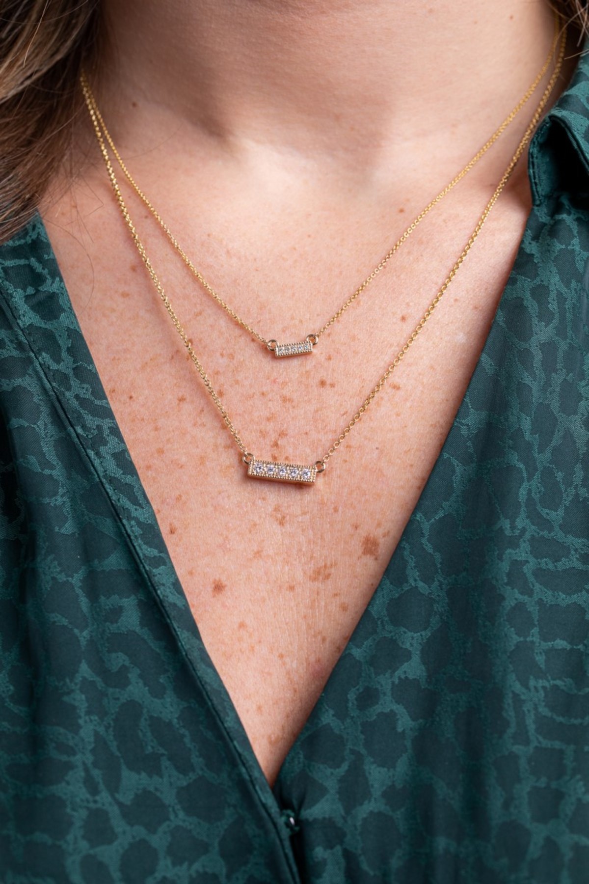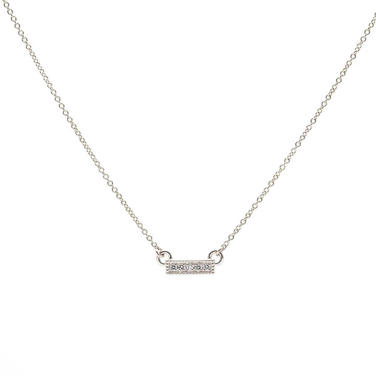 The Mini Heirloom Bar Necklace from The GATES Collection by M. Flynn is a dainty everyday necklace measuring 18″ with the option to adjust.