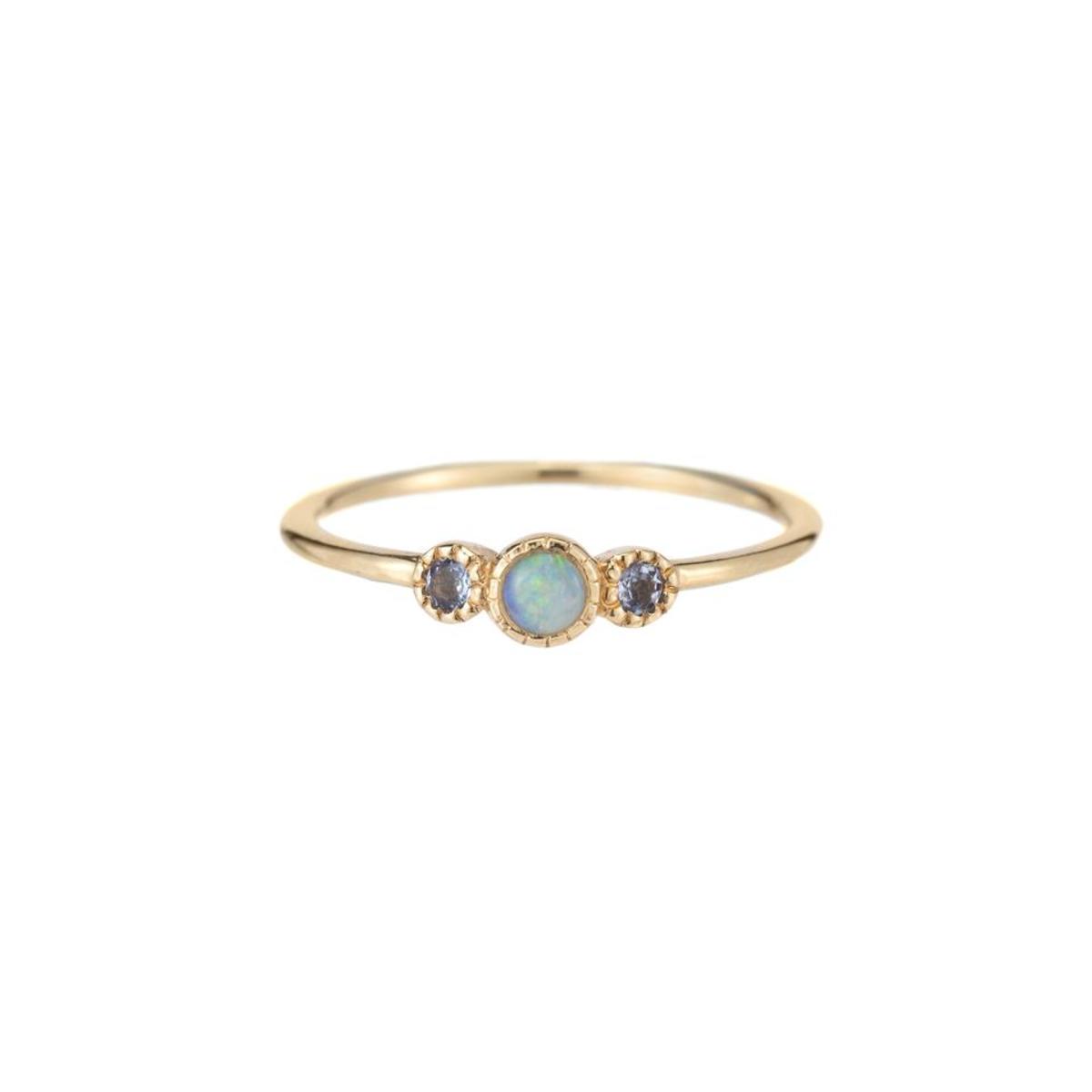 The Opal Tanzanite Trio ring is as sweet as ever. Featuring a small Australian opal flanked by beautiful tanzanites, this piece will capture your heart.