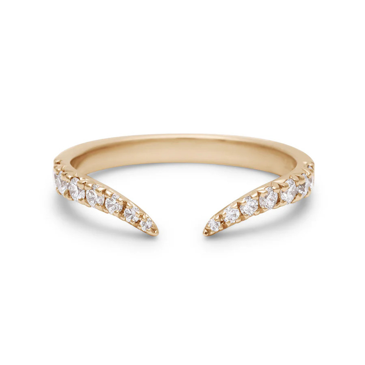 The Chrysalis Band from Anna Sheffield features inlaid graduating pave white diamonds in 14k yellow gold. Pair this ring with your round, oval, or marquise cut engagement ring for the perfect seamless look!