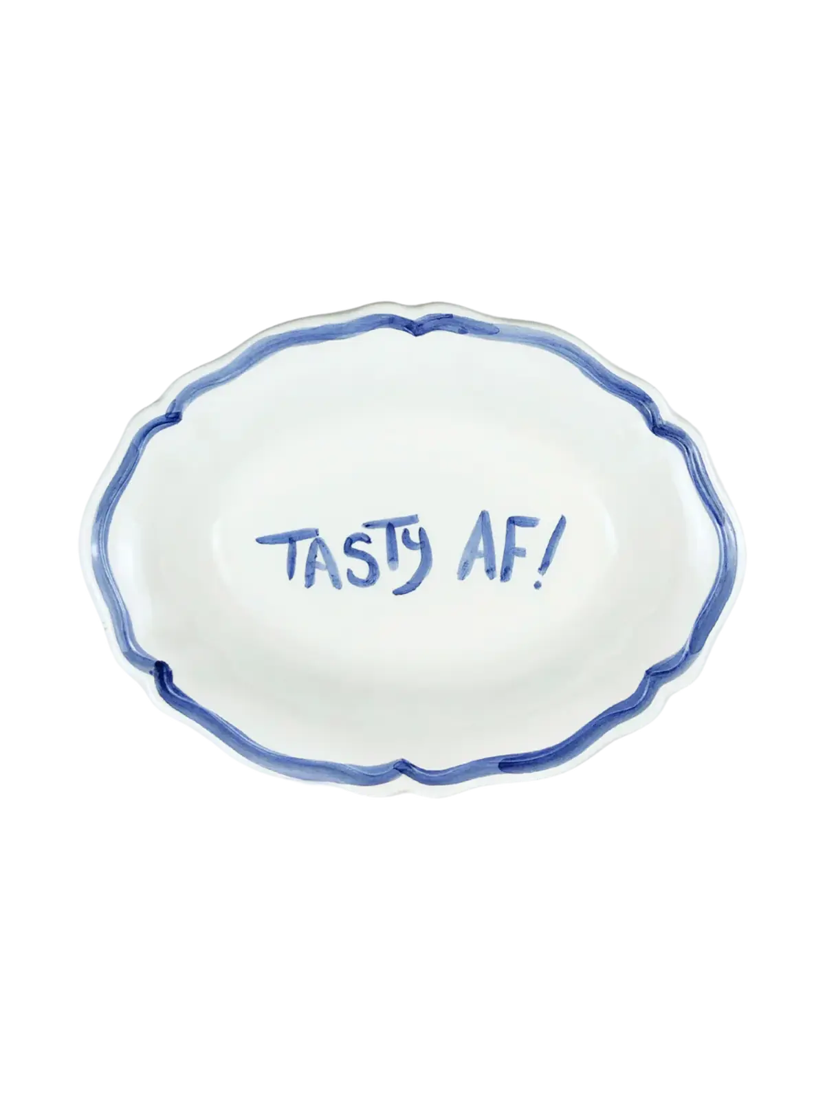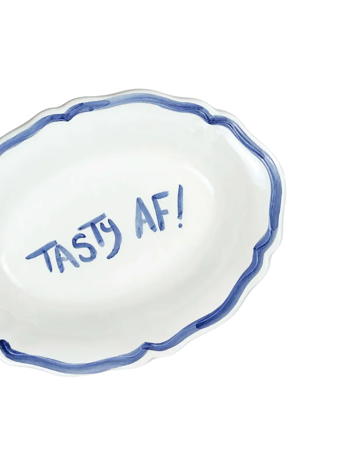 Add a bold statement to your table with the Oval Serving Dish “Tasty Af.” Perfect for serving appetizers, sides, or main courses, this dish combines functionality with playful sophistication. Crafted from high-quality materials and featuring a sleek design, it’s ideal for entertaining or adding a modern edge to everyday dining. Whether you’re hosting a dinner party or looking for a unique gift, this serving dish brings style and personality to any occasion.