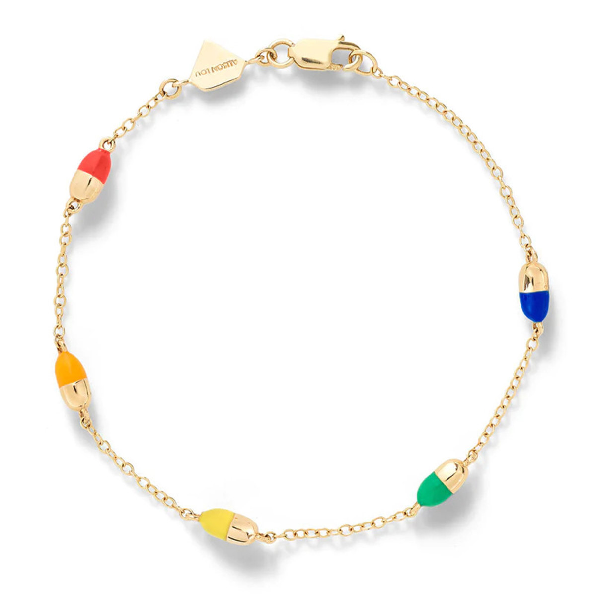 The chillest chill pills! Featuring rainbow enamel pills in 14k yellow gold.