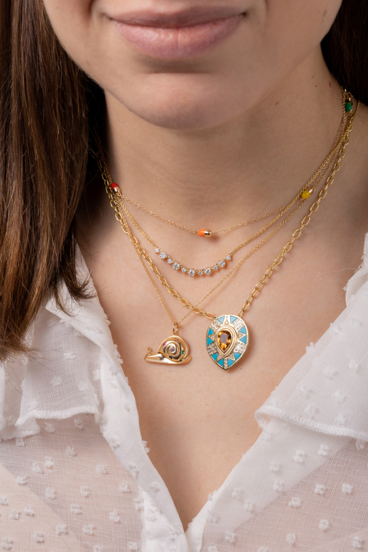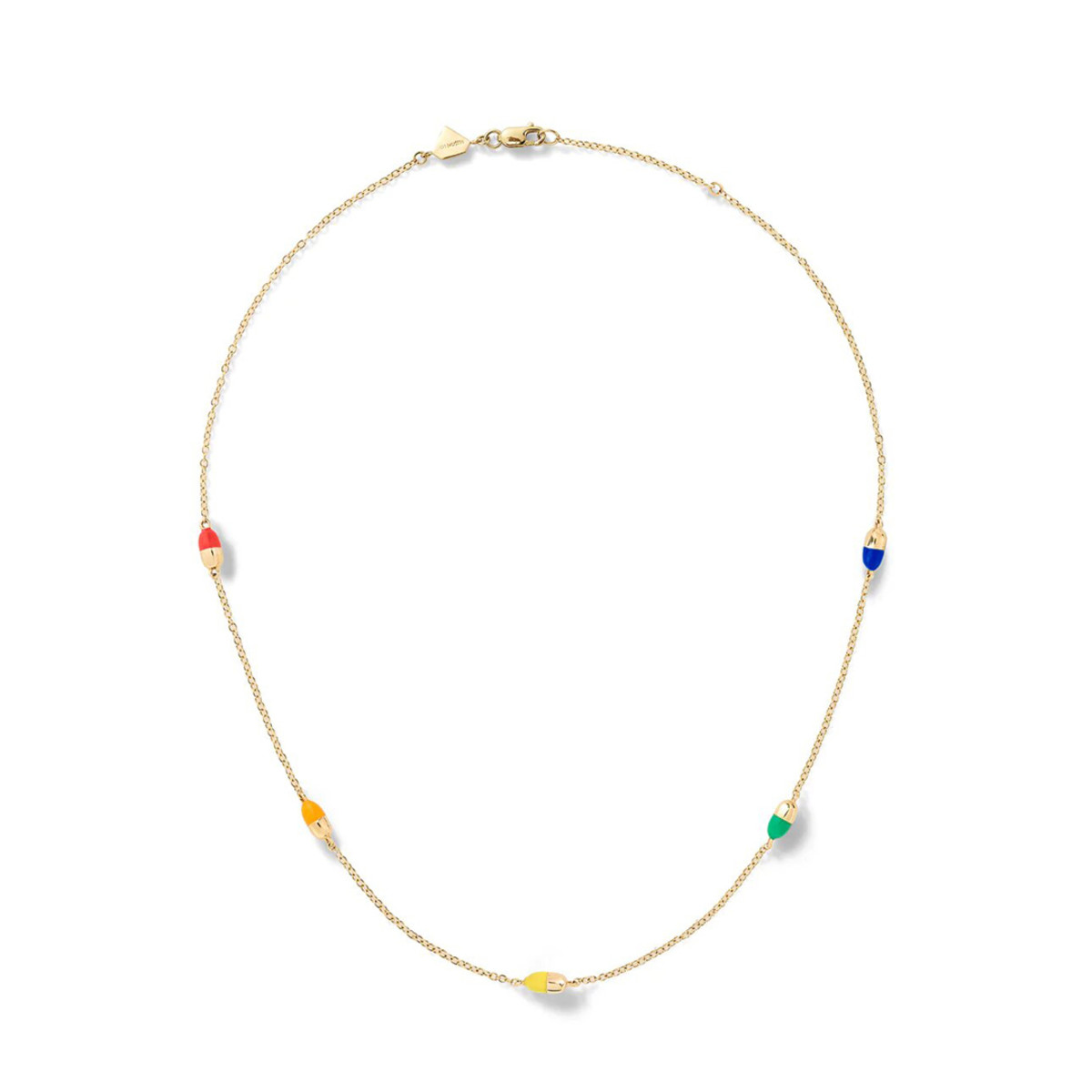 The chillest of chill pills! Featuring rainbow enamel pills in 14k yellow gold.
