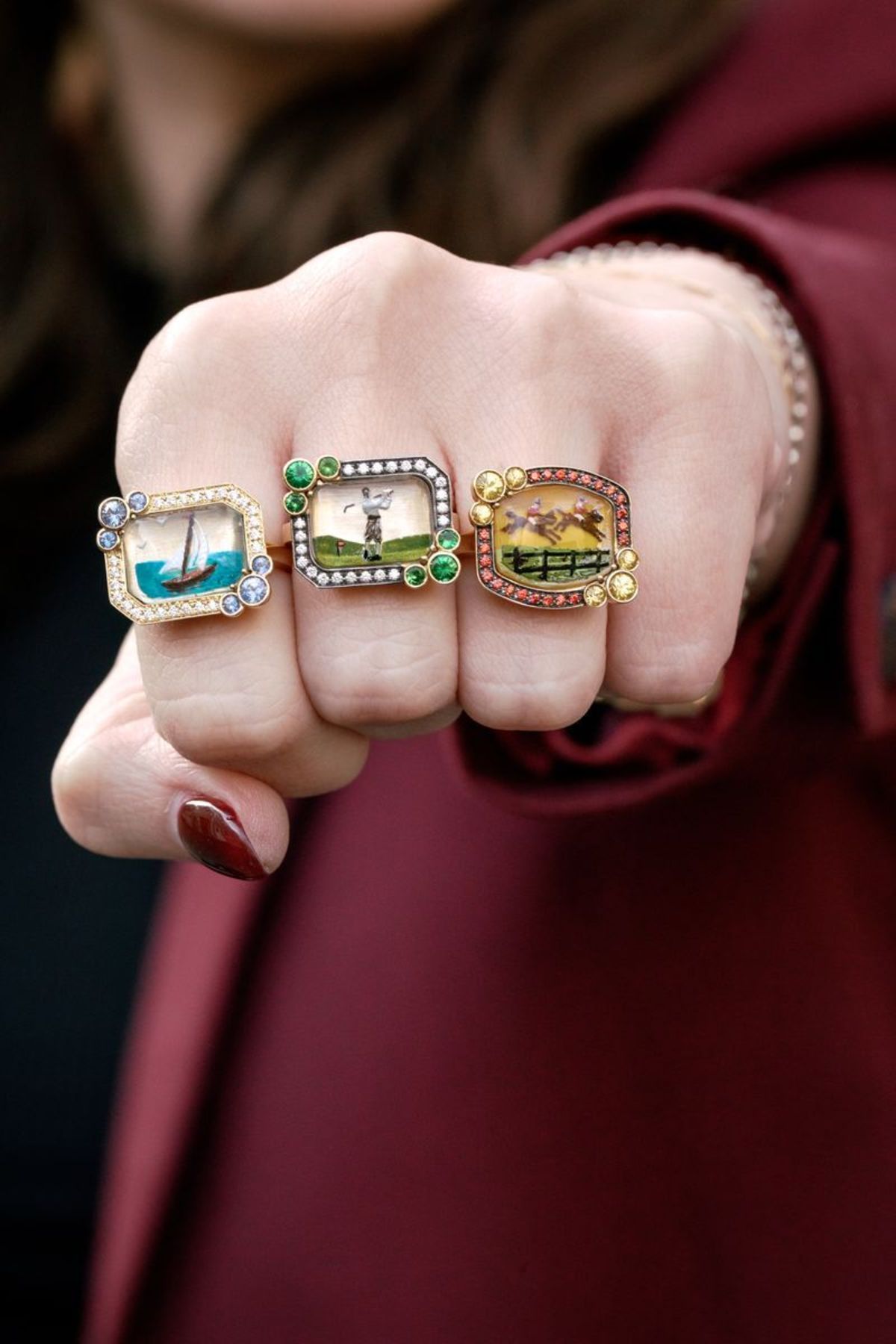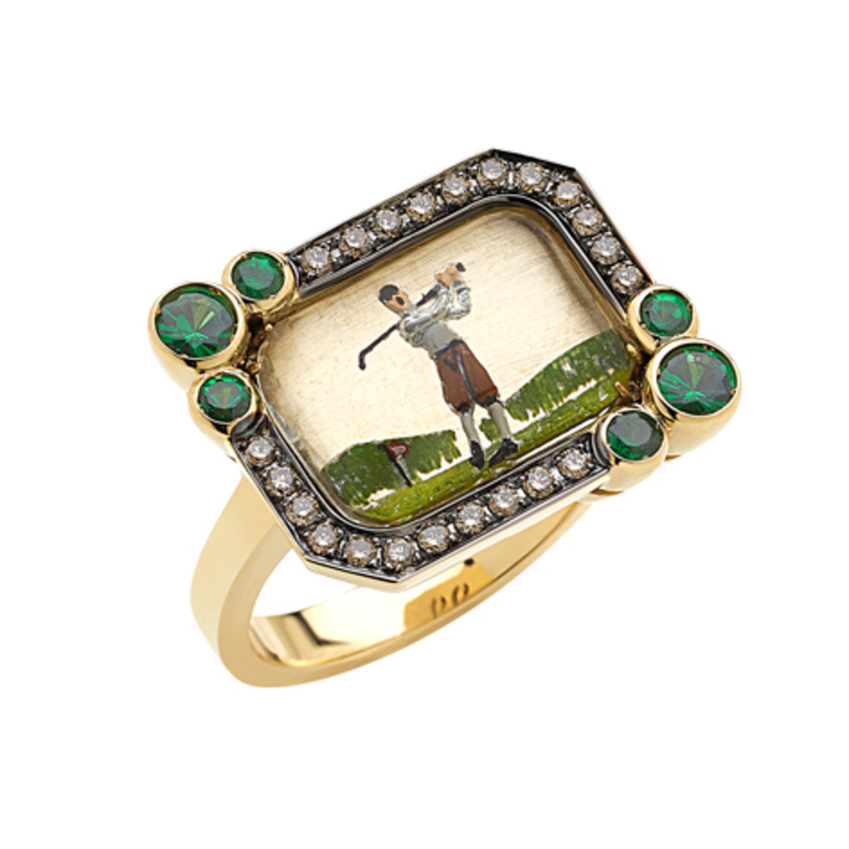 Playing Golf Ring Vintage Essex Crystal Ring with Tsavorites Garnet, Diamonds