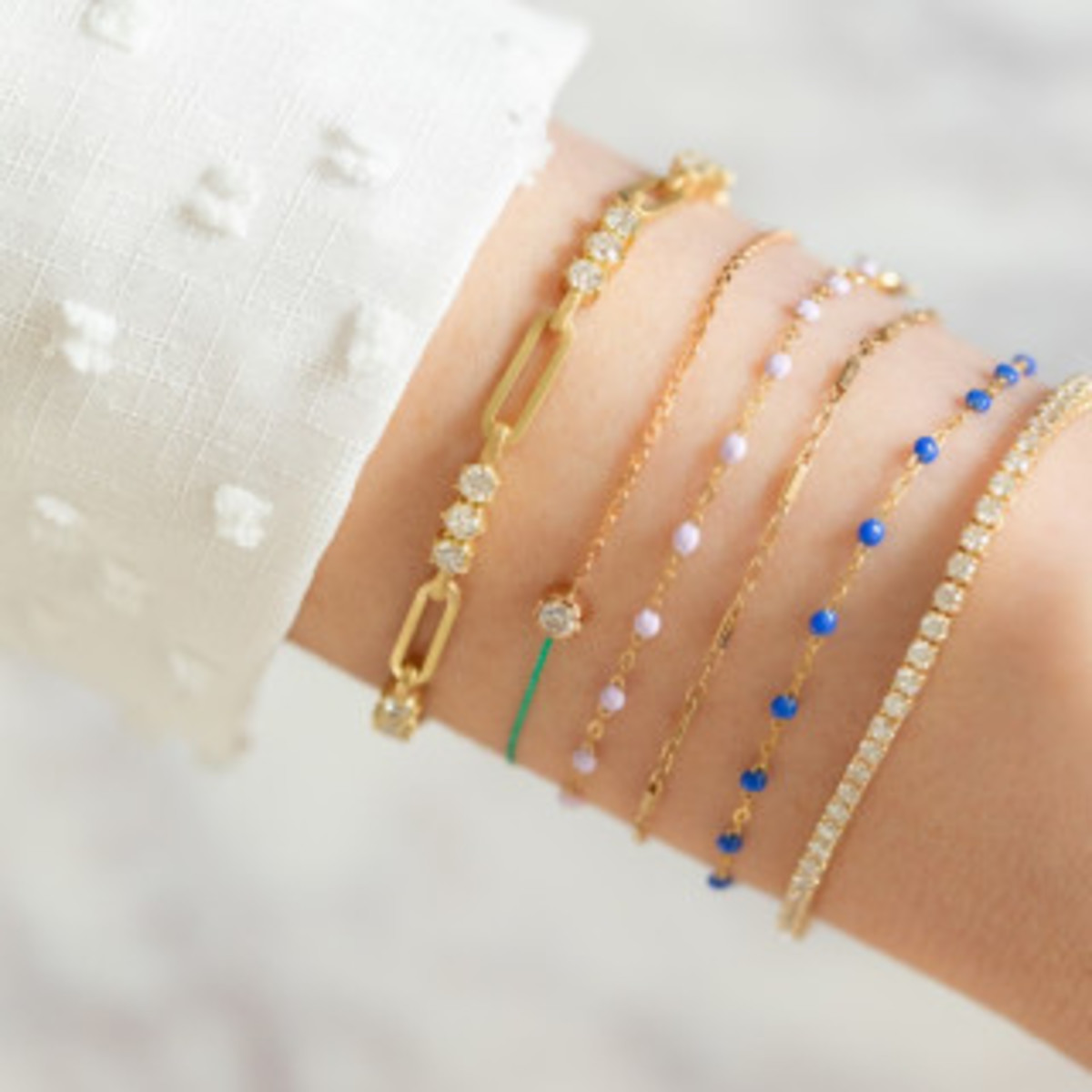 A unique and resplendent marriage between a chain and a string, bound together by one beautiful everlasting diamond. Made in Paris, The Pure collection by RedLine revisits its jewelry line to create a stunning string, gold, and diamond bracelet. This jewelry piece is composed of an 18k gold chain connecting RedLine’s iconic string. The 0.1ct diamond enclosed by an 18k gold bezel setting glows at the center of your bracelet, gathering the power and beauty of the chain and the string.