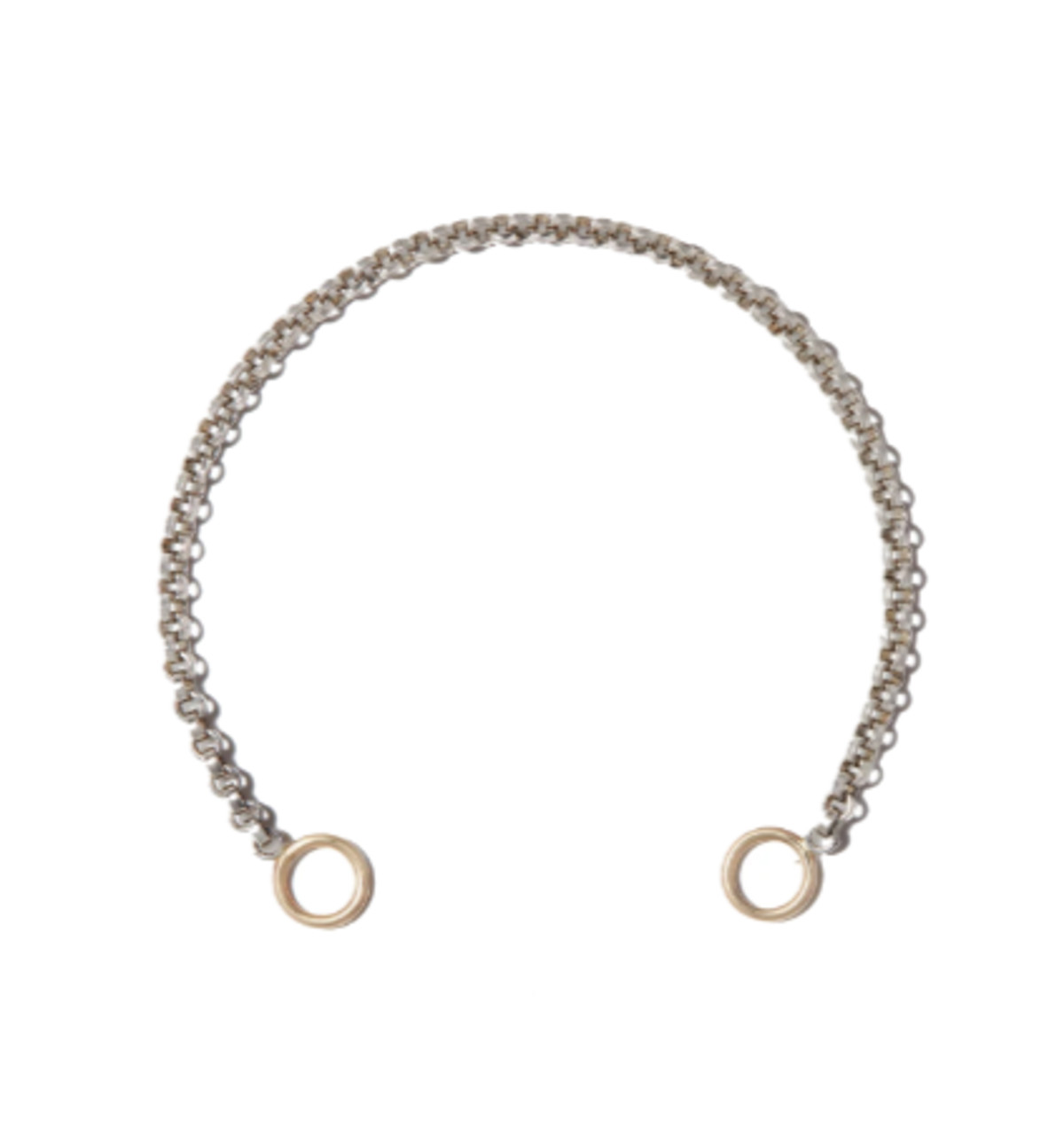 The Rolo Chain in Silver Bracelet with 14K Yellow Gold Links stands firm on its own— a simple chain with lots of playing power.