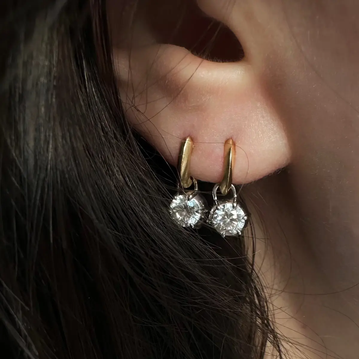 Sienna Two Tone Huggies Drop in 18K Yellow Gold and Platinum