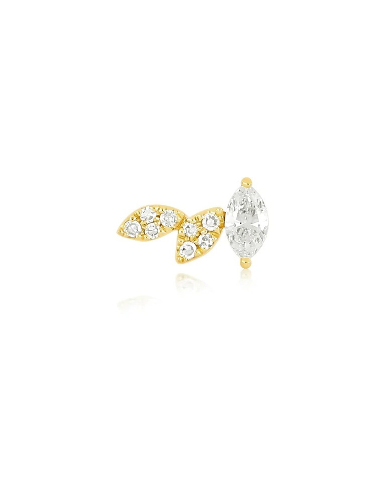 The Triple Marquise Stud Earring features two marquise shapes set in pavé diamonds with a single marquise diamond at the end.