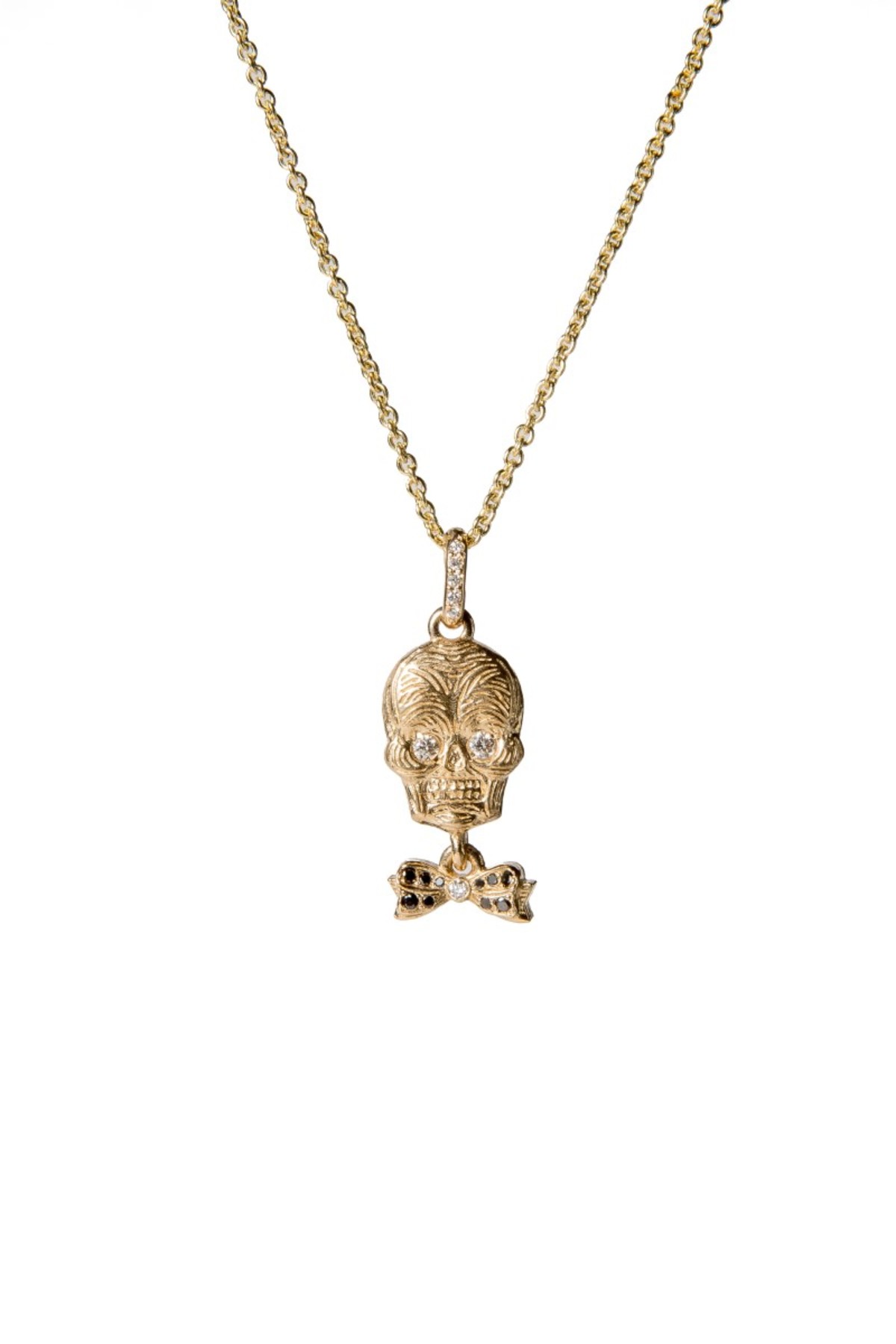 Skull with Black Bowtie Charm in 14K Yellow Gold