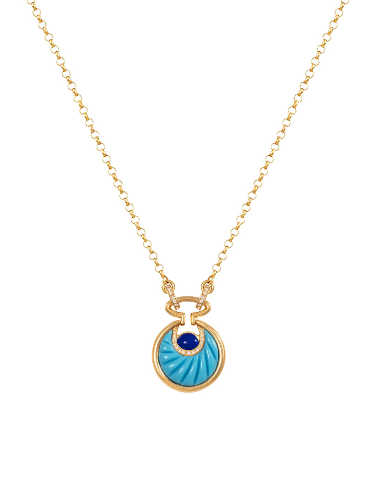 Whimsical meets celestial in the Small Circus Moon Necklace, featuring a vibrant inlay of turquoise and lapis. With its colorful crescent moon design and eye-catching contrast, this necklace captures the magic of the night sky with a playful, artistic edge. Whether worn solo or layered, it brings a touch of cosmic charm and color to your everyday look.