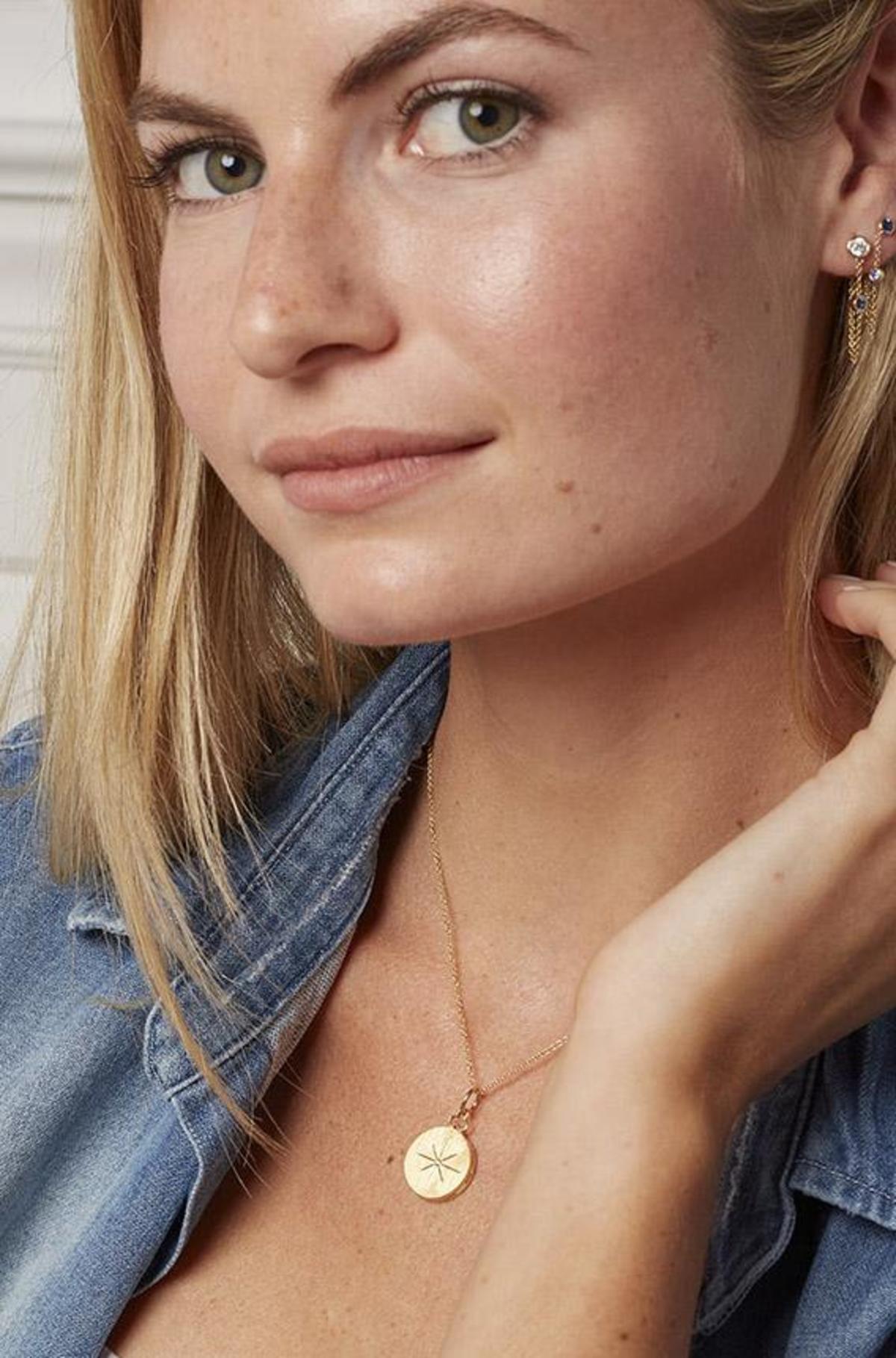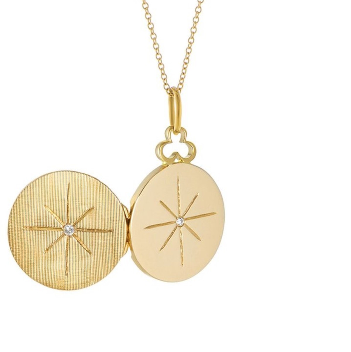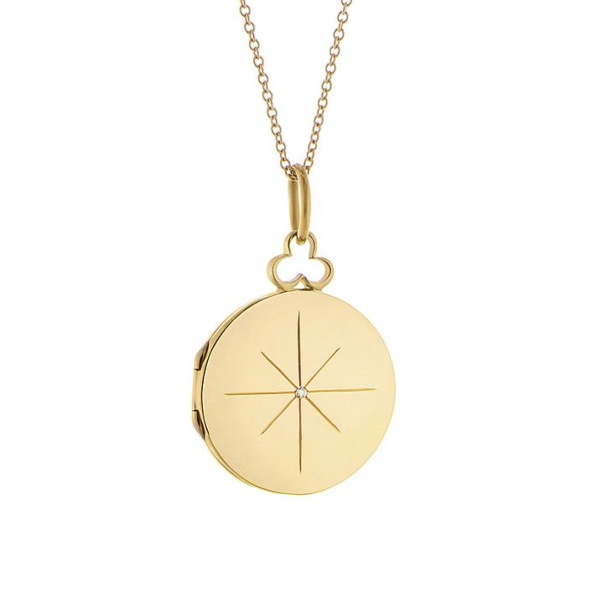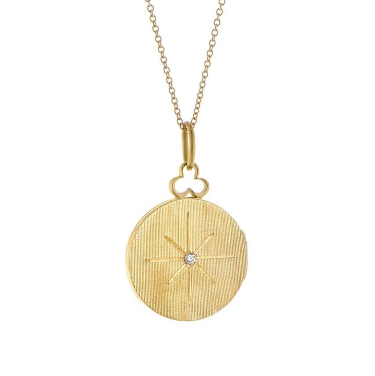 This 18k yellow gold locket features a radiant star motif, accented with diamonds
