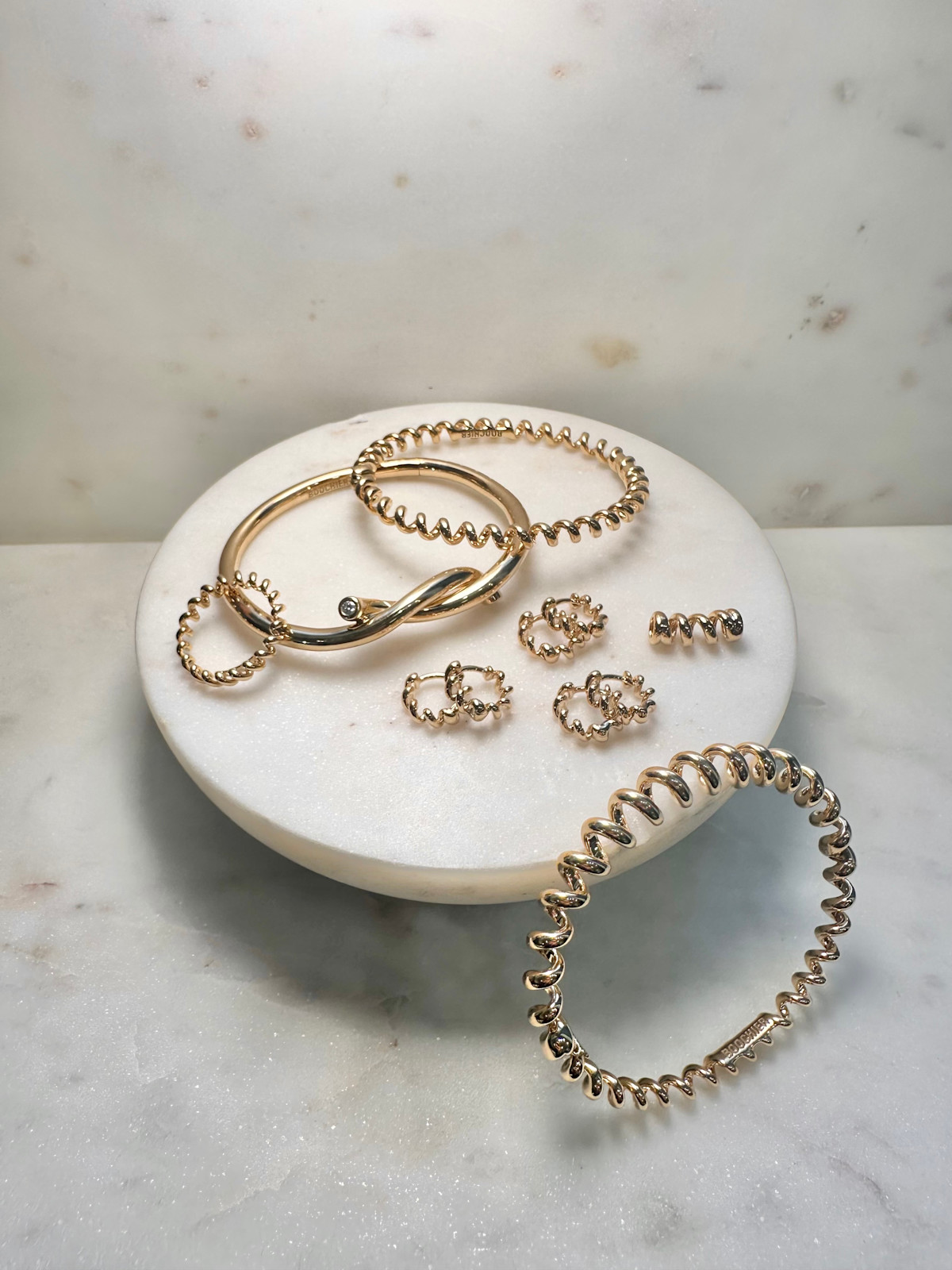 Inspired by our ongoing ode to unity and togetherness, the Yellow Gold Ties Bangle is an aluminous piece that delicately combines meaning with beauty. Hand-crafted with the finest 18K gold, this piece can elevate any outfit.
