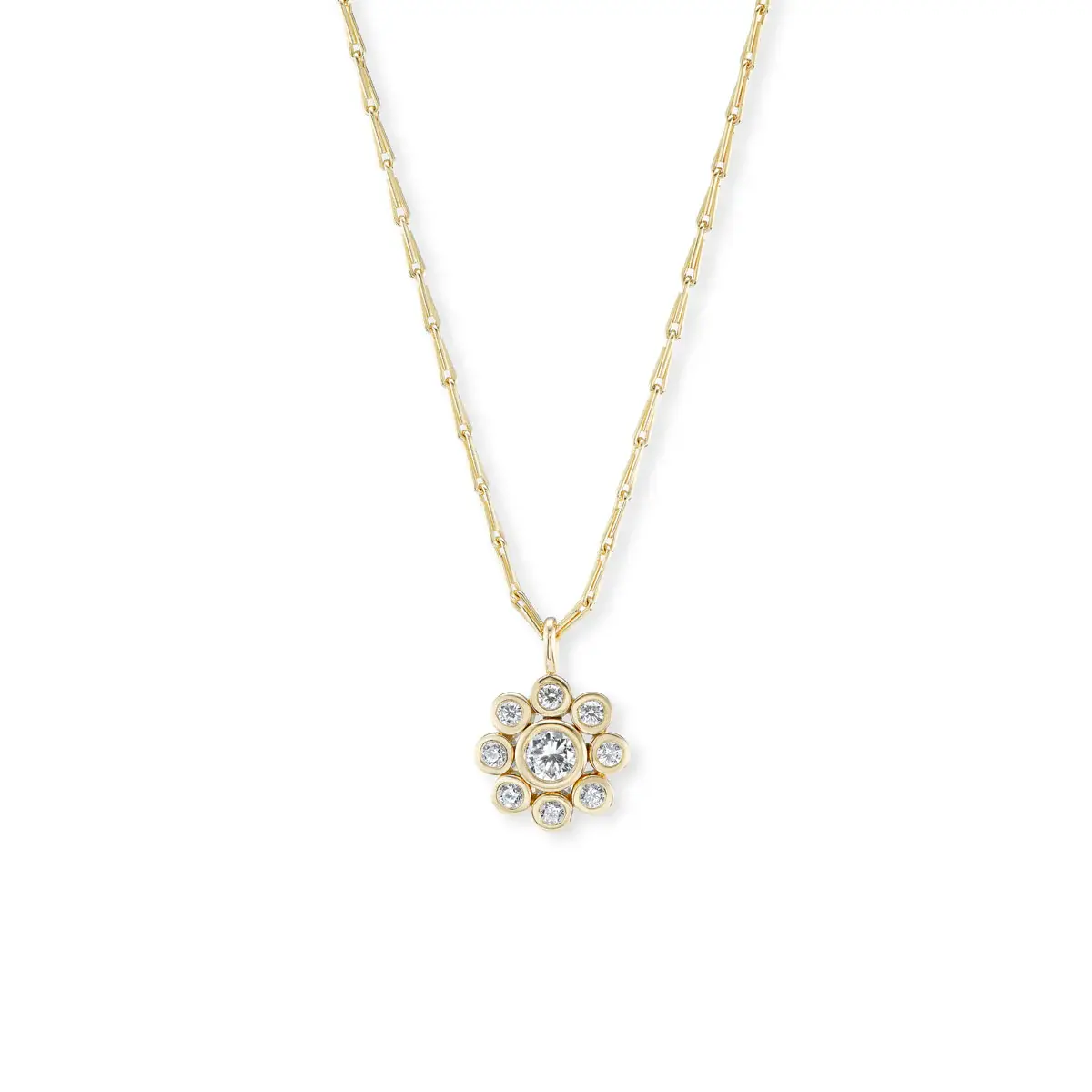 Delicate, dazzling, and timeless — the Wildflower Pendant features a floral-inspired design adorned with sparkling round brilliant diamonds. Handcrafted with precision, this elegant pendant captures the beauty of nature in full bloom. Whether worn alone or layered, it adds a refined touch of shimmer to any look. Made with high-quality materials and M.Flynn’s signature craftsmanship, it’s the perfect gift or personal keepsake.